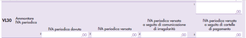 - nel campo 2, l’ammontare complessivo dell’IVA periodica dovuta; tale importo corrisponde alla somma degli importi dell’IVA indicati nella colonna 1, del rigo VP14 del modello di comunicazione delle liquidazioni periodiche IVA relative al 2025 e del quadro VP della presente dichiarazione, qualora compilato (senza considerare gli importi già indicati nella colonna 1 del rigo VP14 ma non versati in quanto non superiori a 100 euro). A tale ammontare va sommato anche l’importo dell’acconto dovuto indicato nel rigo VP13 campo 2. In caso di comunicazioni periodiche omesse o errate, occorre riportare anche gli importi inseriti nel quadro VH;